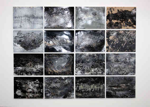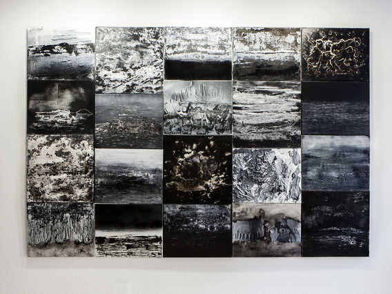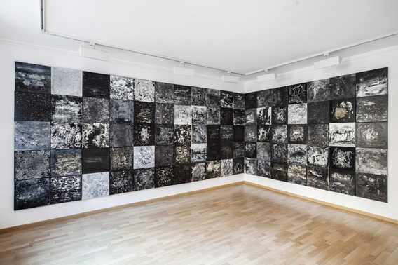 In seinen abstrakten Bildern schafft Marcus Fauser assoziative Bildräume, die mit über 250 Bildern installativ präsentiert werden.