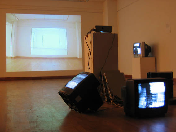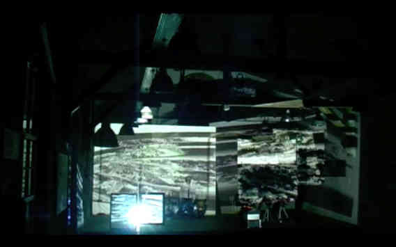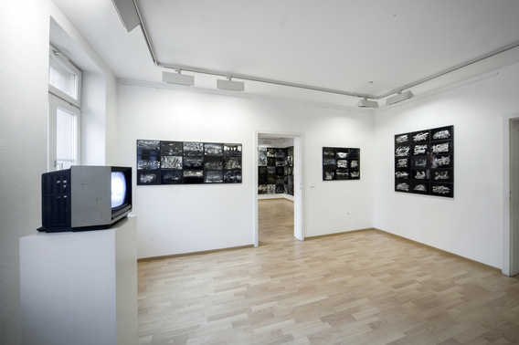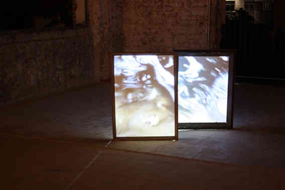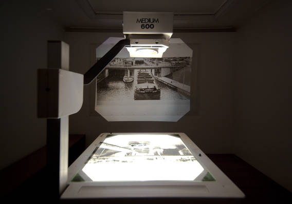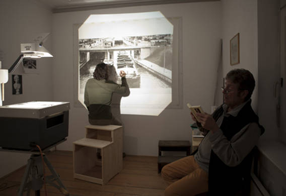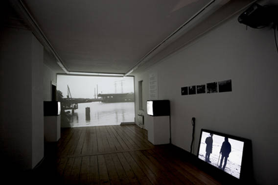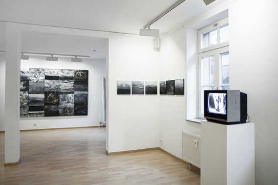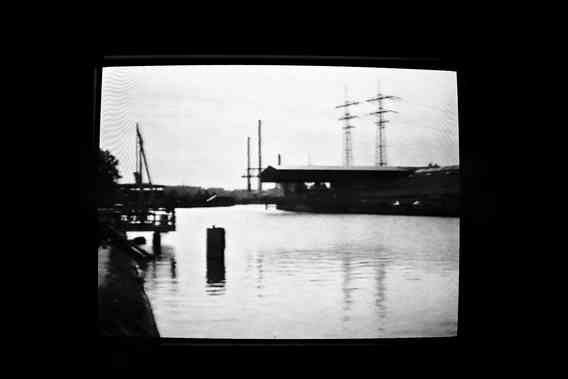 Auch hat Marcus seiner Rauminstallation die Farbe entzogen. Was er zeigt, ist eine Bilderwelt in Schwarzweiß, schwarzweiß wie der Himmel, die Gegenstände und Personen auf dem winterlichen Schneeweg nach Nürtingen, wo am Wehr der Neckar bergauf fließt. Der tastende Schwenk der Kamera, die den tanzenden Blätterschatten auf der gleißenden Oberfläche des Wassers aufzeichnet, ehe der ungesicherte Widerschein von Licht und Dunkel überholt und überlagert wird von der Realität der Futtersilos, zementener Kaimauern und der röhrenbewehrten Untersicht der Brücken.