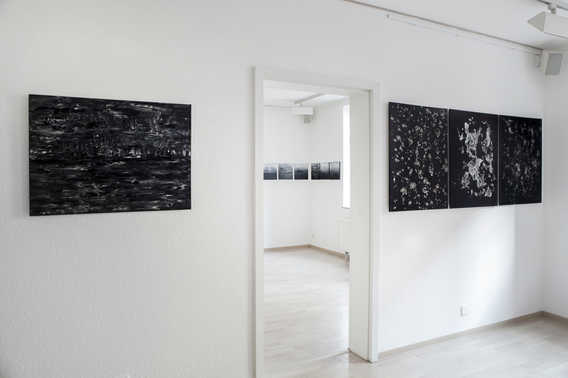 Marcus Fausers Malerei versteht sich als assoziativer Bildraum, der sich immer wieder einer neuen Auseinandersetzung des Betrachters öffnet. Wie in einem schwarzen Spiegel, der Vergangenes, Verborgenes und Erlebtes in die Gegenwart transportiert, sieht man sich selbst. Mikro- und Makrokosmos verwachsen, Phantasie entsteht, das Unterbewusstsein formt und verwirft Bilder, bis eines davon gefestigt ist. Es entstehen: Ansichten in Schwarz.