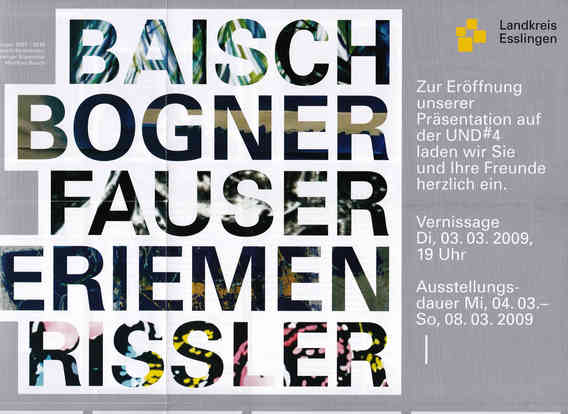 Junge, zeitgenössische Kunst greift auf die Erfahrungen dieser Strömungen und Ismen zurück, interpretiert und beschäftigt sich damit unter den Bedingungen je eigenständiger Arbeiten. u.a. John Armleder, Madeleine Boschan, Annelise Coste, Patricia London, Marcus Fauser, Gitte Schäfer, Sylvan Lionni und Marcus Neufanger Eingebettet ist diese Präsentation in Schau- und Leseräume von fünf zentralen, historischen Kunstvermittlern, deren Wege sich in der damaligen Zeit in Esslingen und der Region regelmäßig kreuzen.