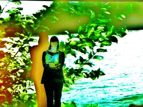 Hölderlin ist auch zu hören. Pausenlos liest sein Neckargedicht Peter Härtling, von Matthias und Marcus aufgenommen im Tübinger Hölderlinturm, Schutzraum des Dichters während der letzten 36 Jahre seines Lebens. Und auch die Tübinger Lyrikerin Eva Christina Zeller liest es. In einer Filmsequenz steht sie und rezitiert vorm Neckar, wie er aufscheint in einer optisch und elektronisch verfremdeten Version von Marcus Fauser. Denn auch der Fluss selber, wie er, gerade mal hundert Meter vom Bahnwärterhaus entfernt, vorbeifließt, ist nichts anderes als das Produkt einer Verfremdung.